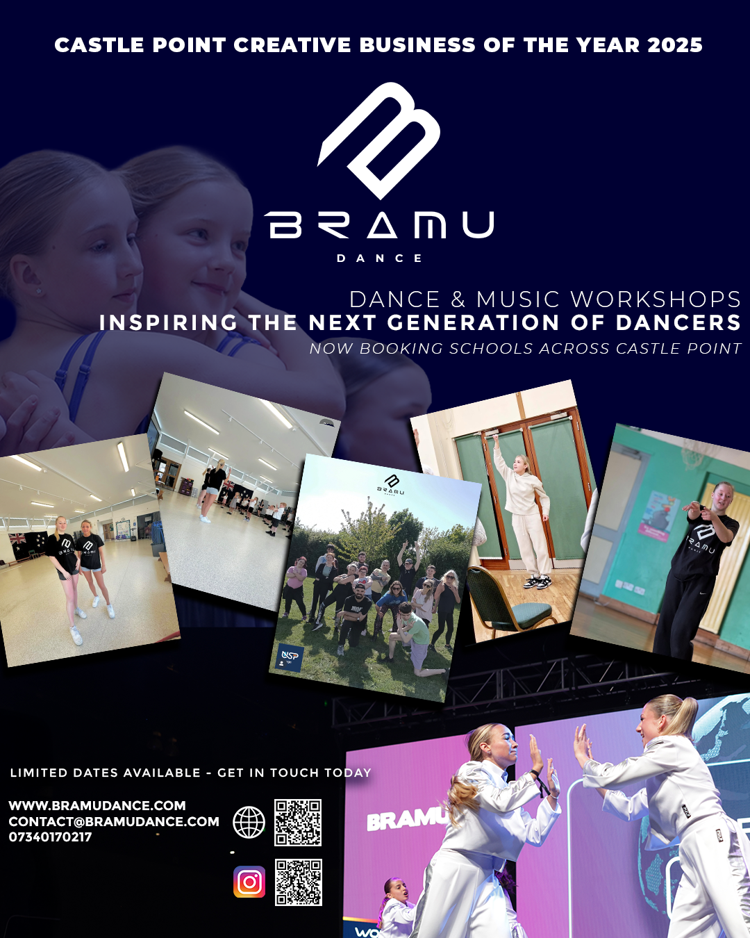 BRAMU Dance brings high‑energy, inclusive dance and music workshops into local schools. Fresh from performances in Los Angeles and named Castle Point Creative Business of the Year 2025, we deliver creative sessions that spark confidence, improve wellbeing, and introduce pupils to the joy of performing arts.
